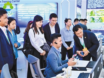 東盟國(guó)家參會(huì)青年代表模擬操作可應(yīng)用于多行業(yè)領(lǐng)域的無(wú)人機(jī)。