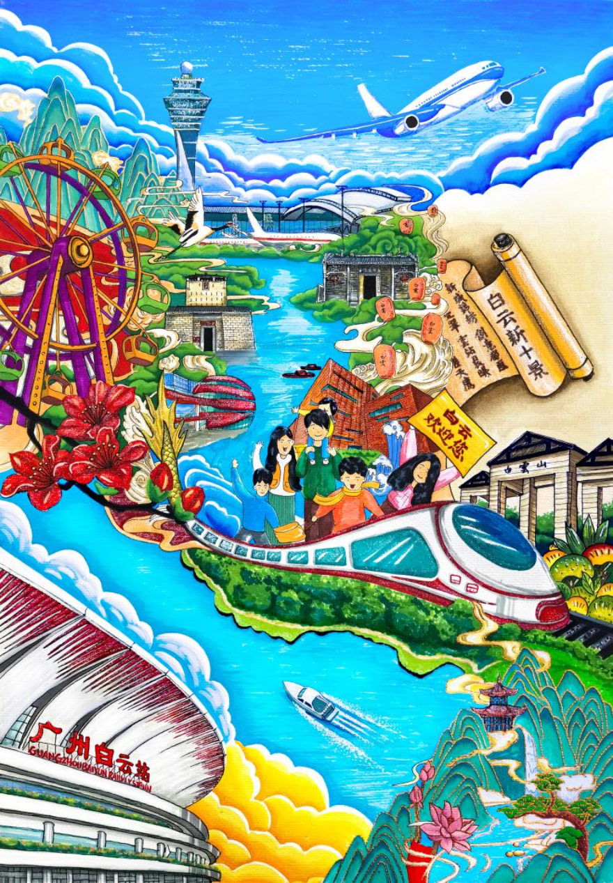 在繪畫類投稿作品中,既有大膽的想象,也有細膩的刻畫,用色彩與線條勾勒出對廣州的點滴印象。