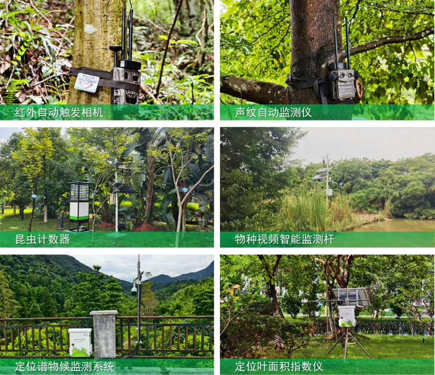 在生物多樣性監測工作中,除了爬山涉水開展野外動植物實地調查外,調查隊伍還會運用一些人工智能等高科技手段(紅外自動觸發相機、聲紋自動監測、定位光譜物候監測系統、定位葉面積指數儀和昆蟲計數器等)進行輔助監測,持續地觀察、記錄和分析生態系統中的鳥類、兩棲爬行動物、哺乳動物、昆蟲和植物等,了解它們的種類、數量、分布和變化趨勢。