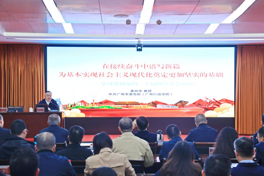 為深入學(xué)習(xí)貫徹黨的二十屆四中全會(huì)精神,進(jìn)一步統(tǒng)一思想、凝聚共識(shí),11月21日下午,廣州市生態(tài)環(huán)境局召開(kāi)學(xué)習(xí)宣傳貫徹黨的二十屆四中全會(huì)精神專(zhuān)題宣講報(bào)告會(huì)。本次報(bào)告會(huì)邀請(qǐng)市委宣講團(tuán)成員、市委黨校副校長(zhǎng)黃麗華教授作專(zhuān)題宣講輔導(dǎo),黨組書(shū)記、局長(zhǎng)王保森主持會(huì)議。