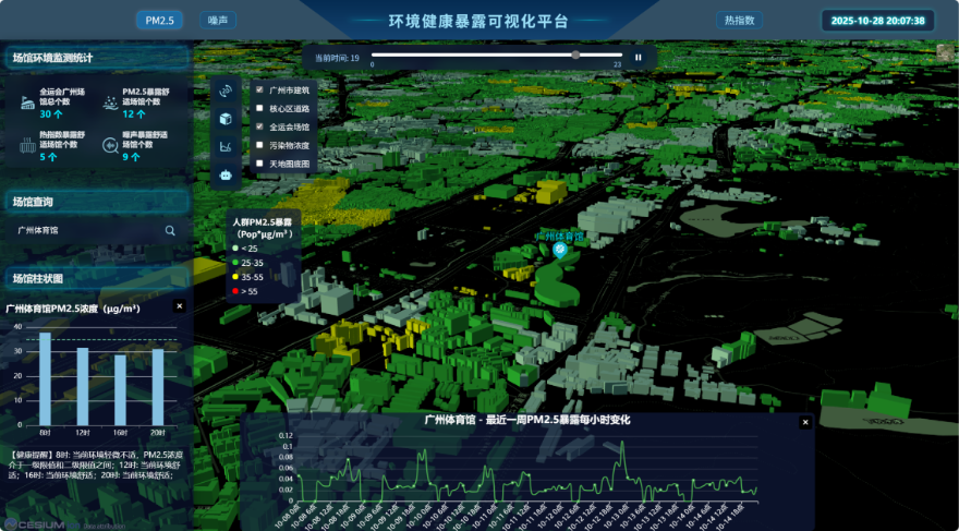 廣東省廣州生態(tài)環(huán)境監(jiān)測中心站(簡稱“廣州監(jiān)測站”)聯(lián)合中山大學(xué)地理科學(xué)與規(guī)劃學(xué)院,開展了一場關(guān)于賽事期間人群健康與PM2.5、噪聲、熱指數(shù)相關(guān)性的深度研究。