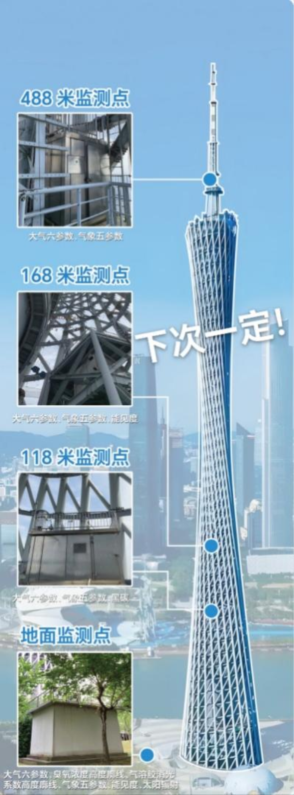 (題外話:廣州監(jiān)測站其實還有一個特別帥的廣州塔四級空氣質(zhì)量梯度監(jiān)測站,分別設(shè)在488米、168米、118米和地面,主要用于監(jiān)測大氣污染物垂直方向數(shù)據(jù)。不過這里測到的數(shù)據(jù)通常用在其他科研項目上,未來有緣再詳說)