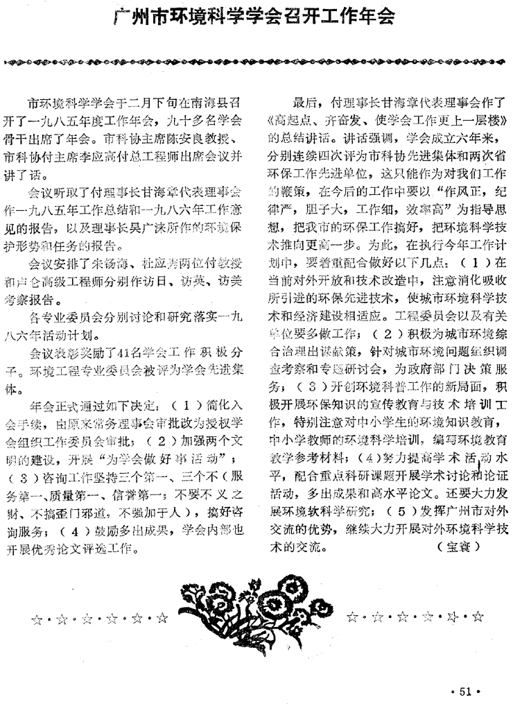 廣州市環(huán)境科學(xué)學(xué)會(huì)舉行工作年會(huì)………………寶 寰(51)
