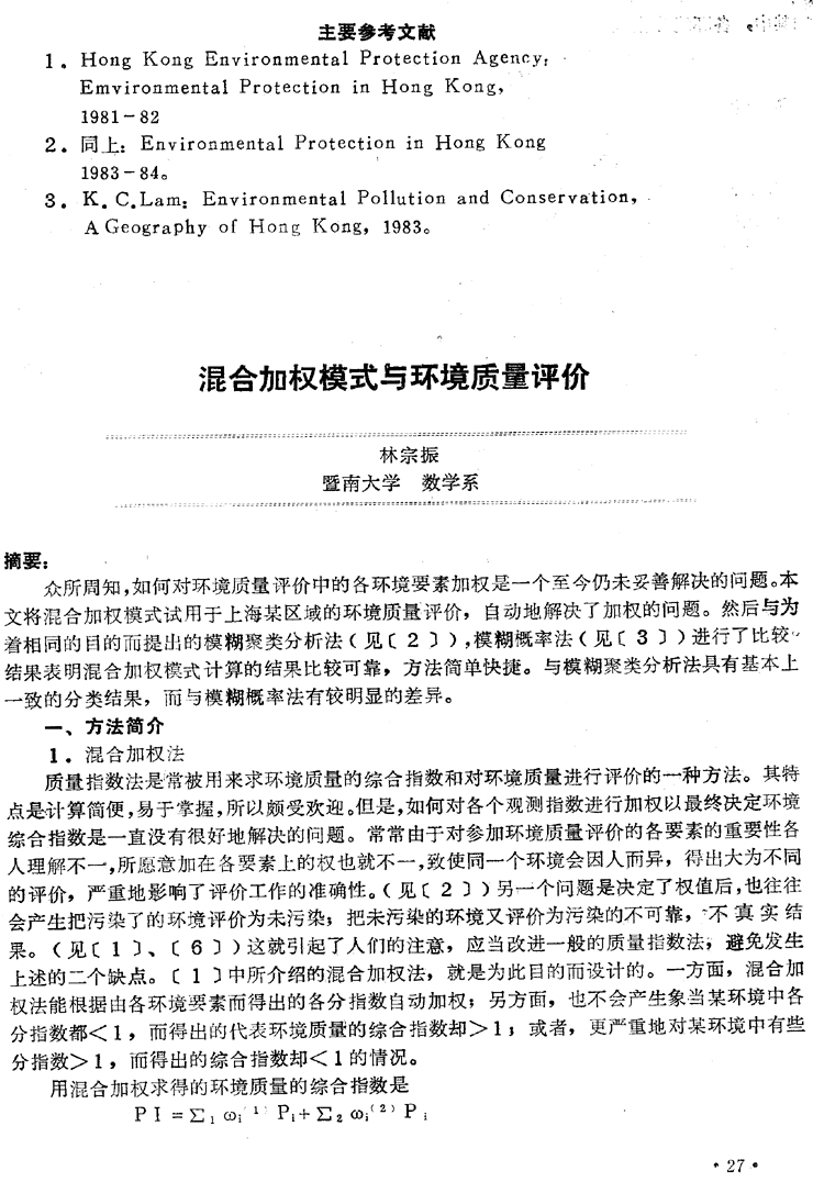 混合加權模式在環境質量評價的應用………………林宗根(27)