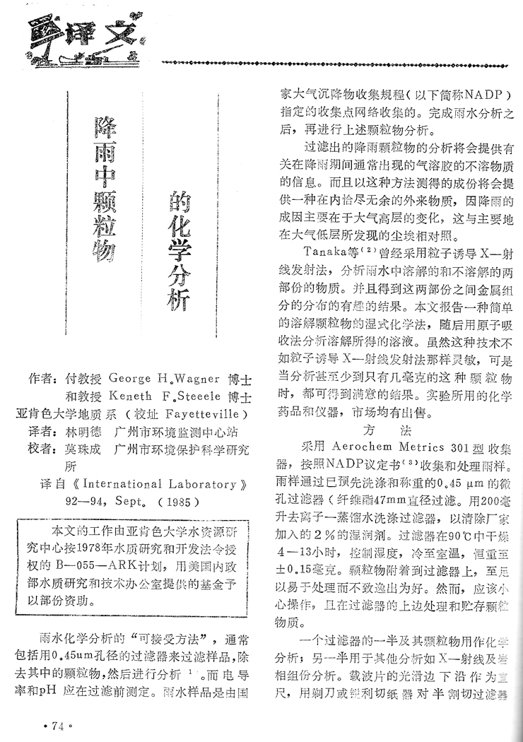 降雨中顆粒物的化學(xué)分析…………………林明德(74)