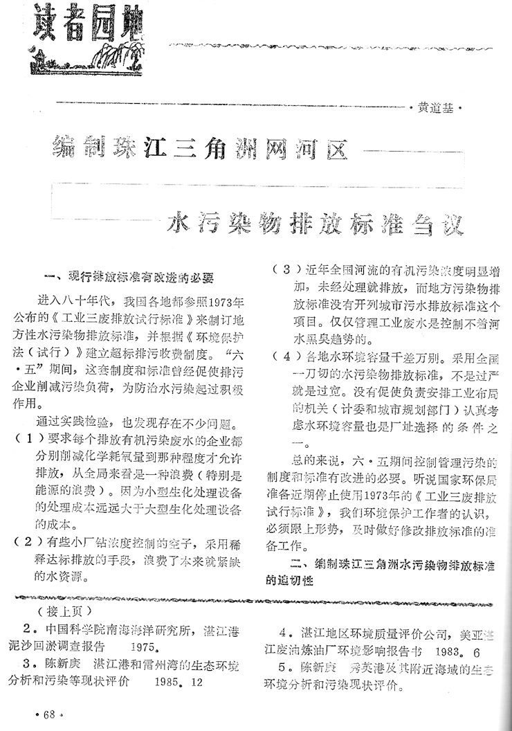 編制珠江三角洲的網河區水污染的排放標準雛議…黃道基(68)