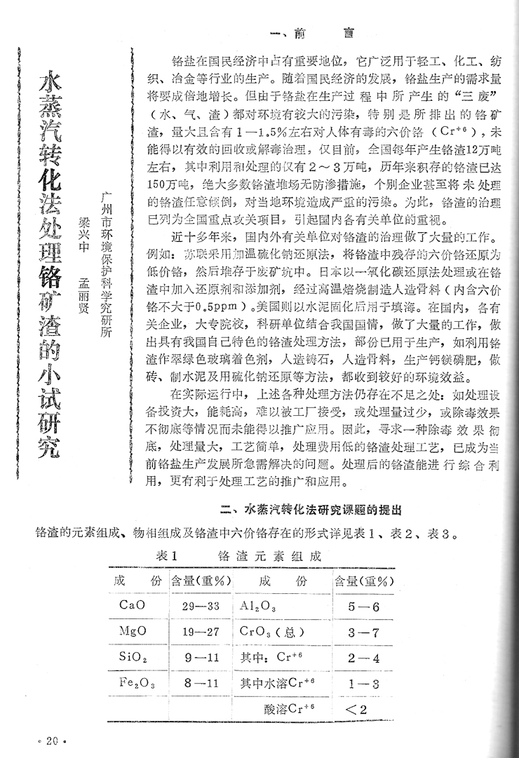 水蒸汽轉化法處理鉻礦渣的小試研究……梁興中等(20)