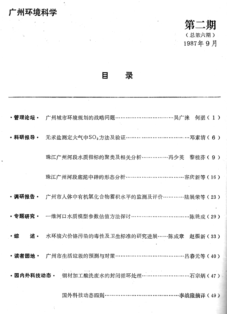 您所在的位置: 首頁 > 行業(yè)動(dòng)態(tài) > 《廣州環(huán)境科學(xué)》 > 1987年 > 87年第2期
