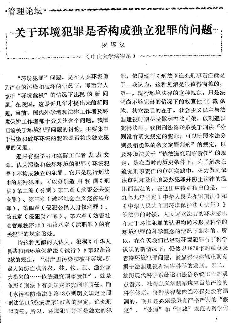 關于環境犯罪是否構成獨立犯罪的問題…………………羅輝漢(1)