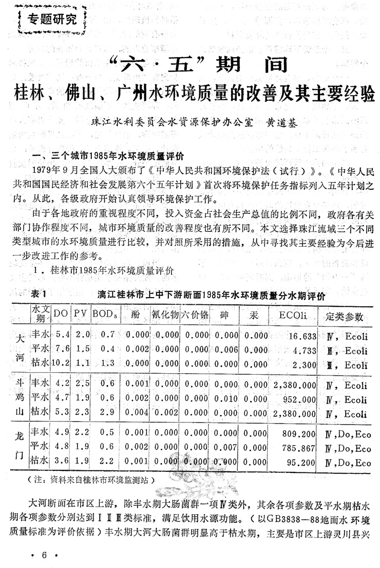 “六·五”期間桂林、佛山、廣州水環境質量的改善及主要經驗…黃道基(6)
