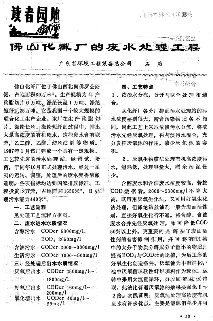 佛山化纖廠的廢水處理工程…………………石 燕(43)