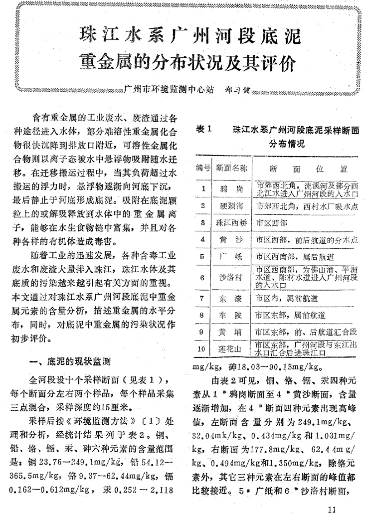 珠江水系廣州河段重金屬的分布狀況及其評價…………………鄭習健(11)
