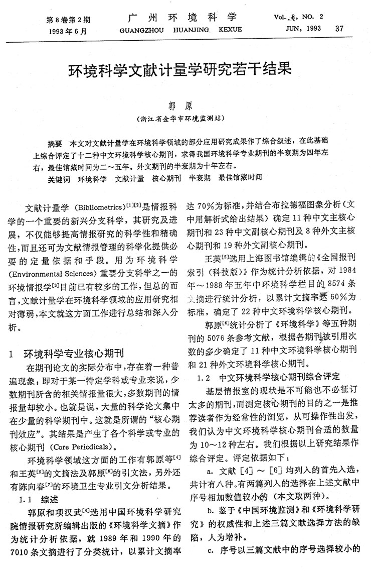 環境科學文獻計量學研究若干結果……………郭原(37)