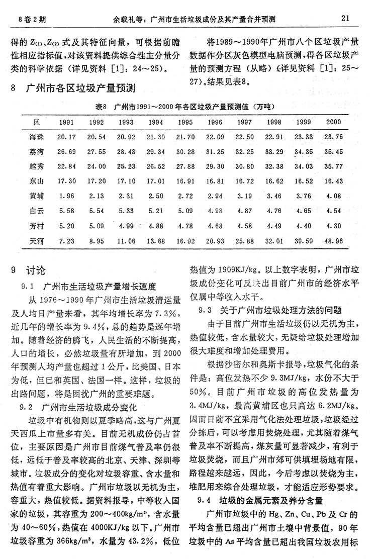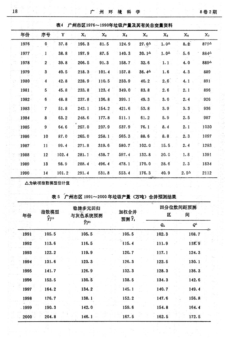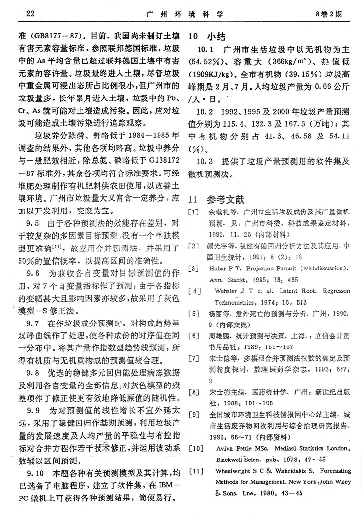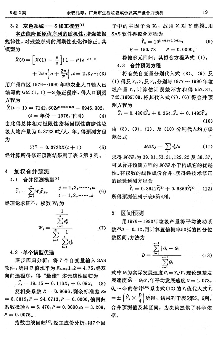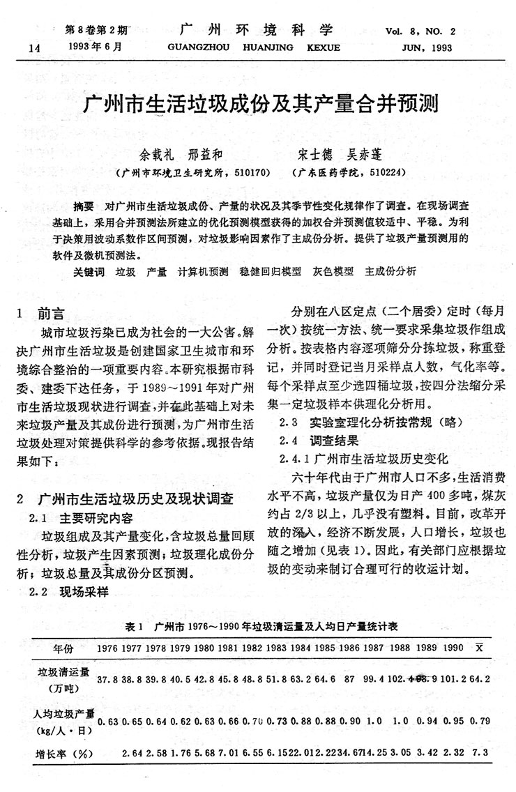 廣州市生活垃圾成份及其產量合并預測…………余載禮等(14)