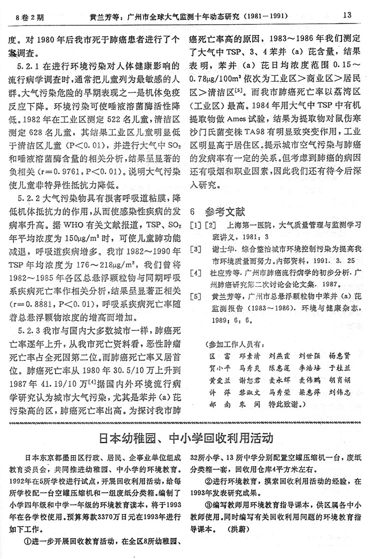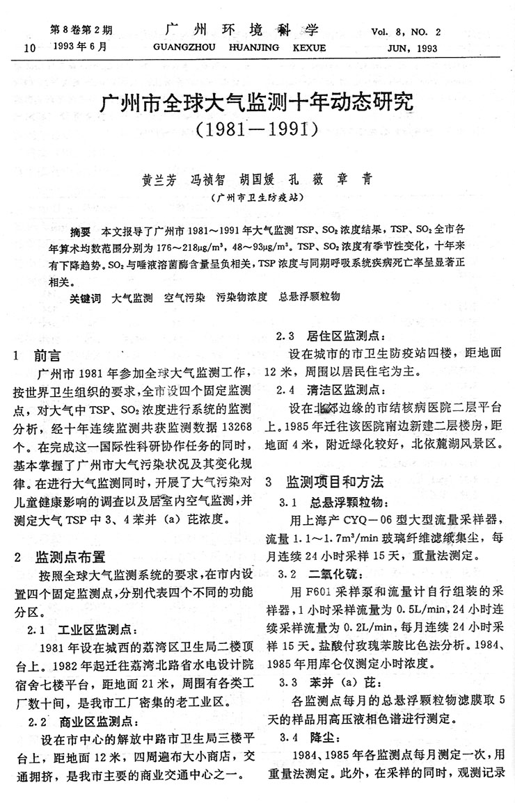 廣州市全球大氣監(jiān)測(cè)十年動(dòng)態(tài)研究(1981~1991)………黃蘭芳等(10)