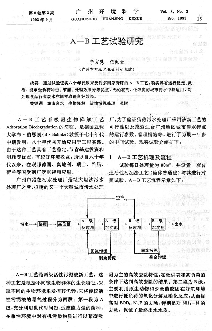 A-B工藝試驗研究……………………………李方慧等(15)