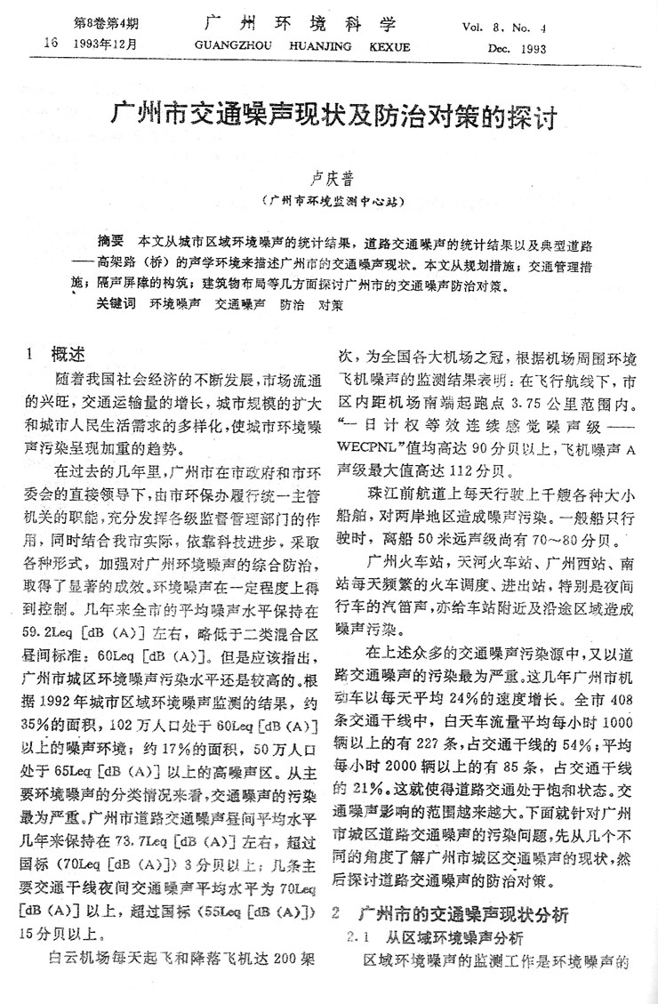 廣州市交通噪聲現狀及防治對策的探討………… 盧慶普(16)