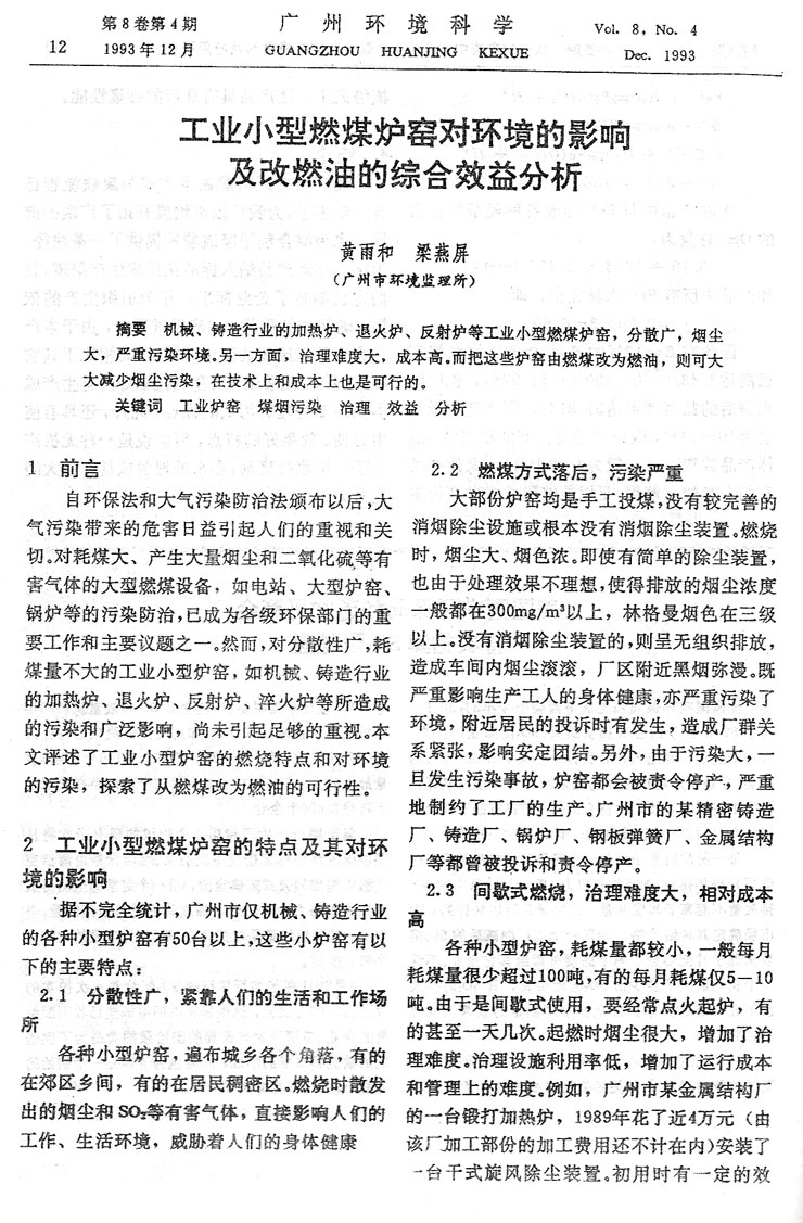 工業小型燃煤爐窯對環境的影響及改燃油的綜合效益分析……黃雨和等(12)