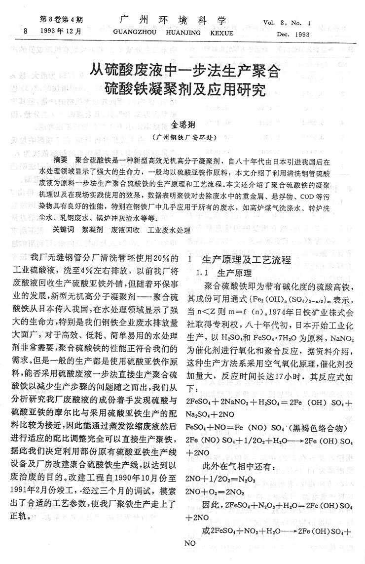 從硫酸廢液中一步法生產(chǎn)聚合硫酸鐵凝聚劑及應(yīng)用研究………金璐琍(8)