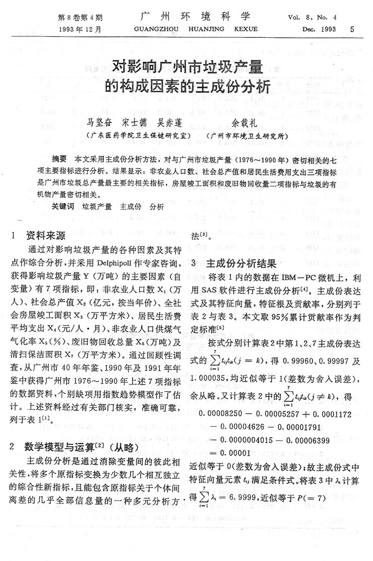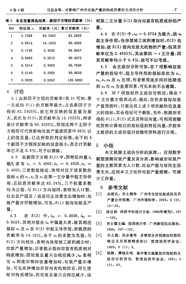 對影響廣州市垃圾產量的構成因素的主成份分析……… 馬堅奮等 (5)