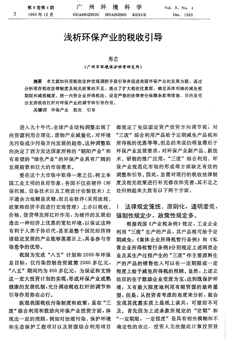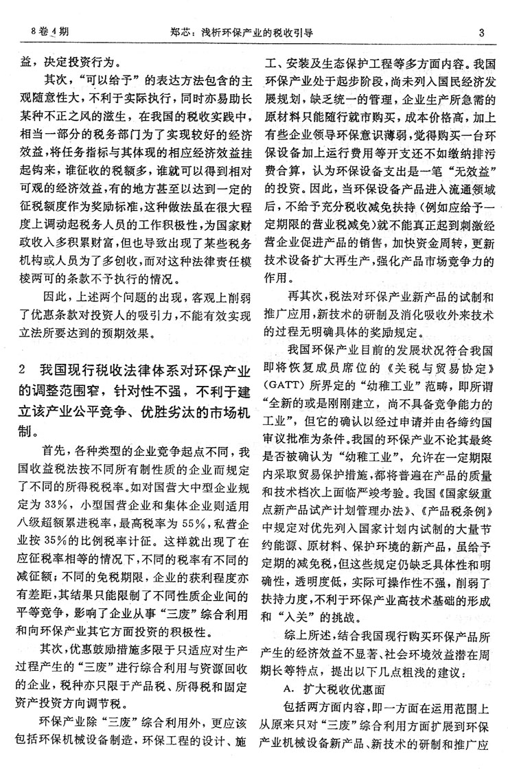 淺析環保產業的稅收引導…………………鄭芯(2)