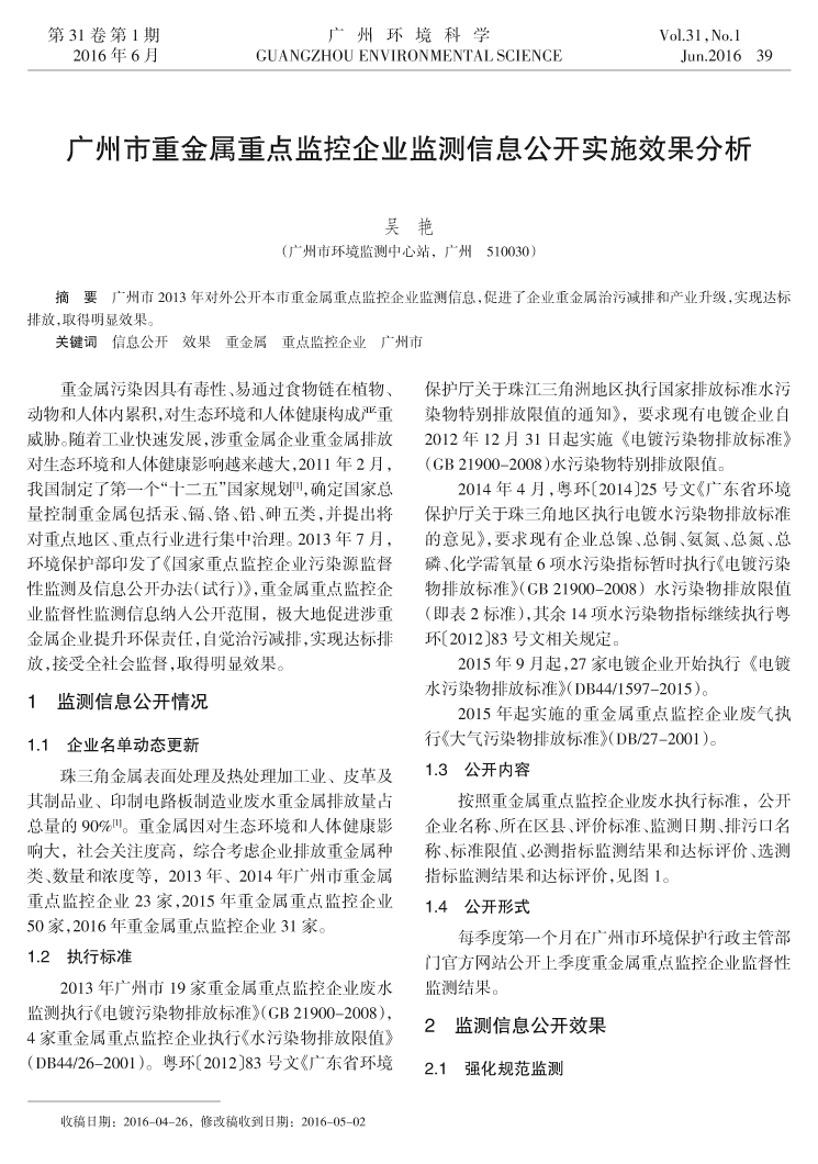 廣州市重金屬重點監控企業監測信息公開實施效果分析……吳 艷(39)