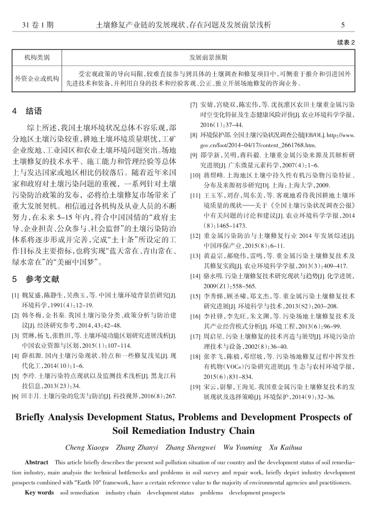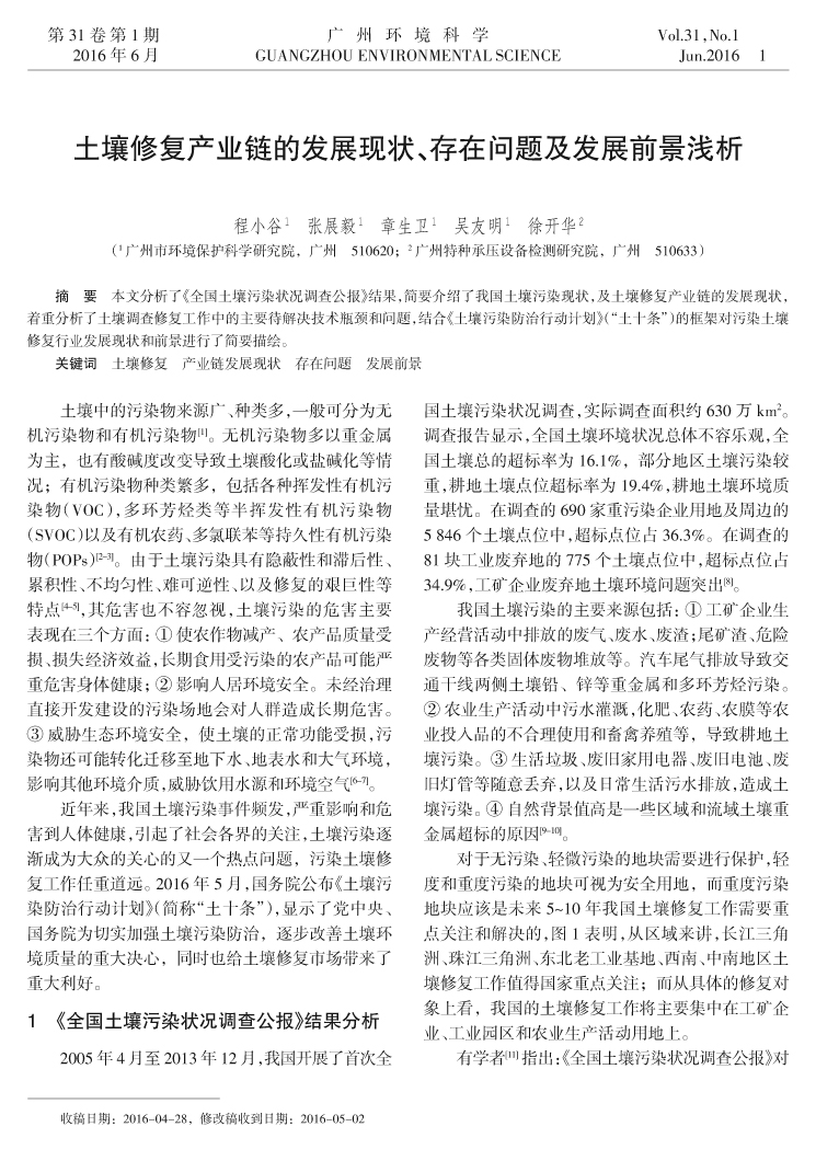 土壤修復(fù)產(chǎn)業(yè)鏈的發(fā)展現(xiàn)狀、存在問題及發(fā)展前景淺析……程小谷,張展毅,章生衛(wèi),等(1)