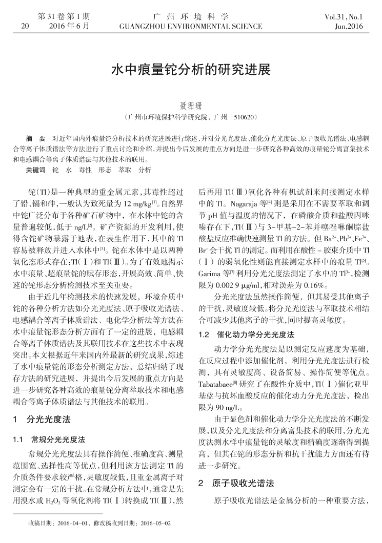 水中痕量鉈分析的研究進展……聶珊珊(20)