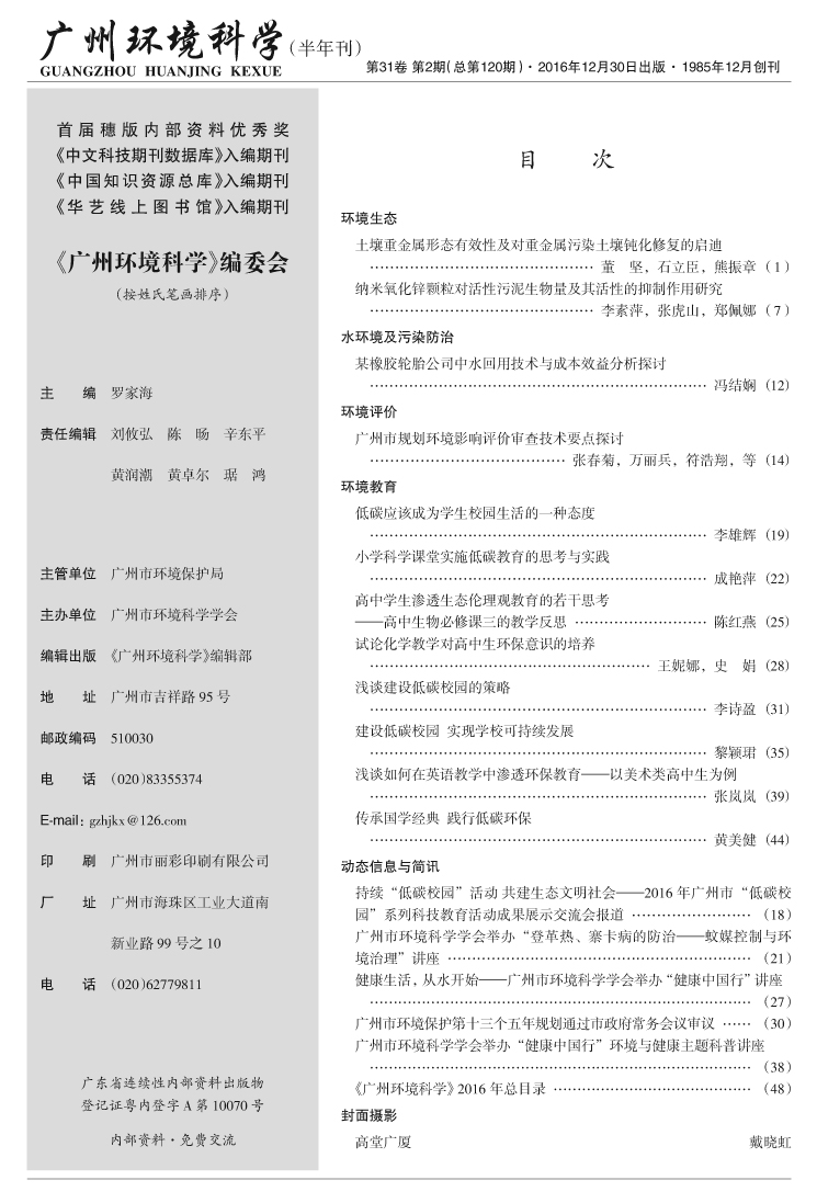 您所在的位置: 首頁 > 行業動態 > 《廣州環境科學》 > 2016 年 > 16年第2期