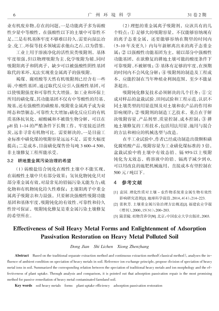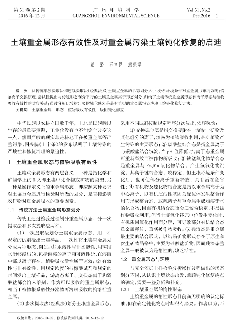 土壤重金屬形態有效性及對重金屬污染土壤鈍化修復的啟迪……董 堅,石立臣,熊振章(1)
