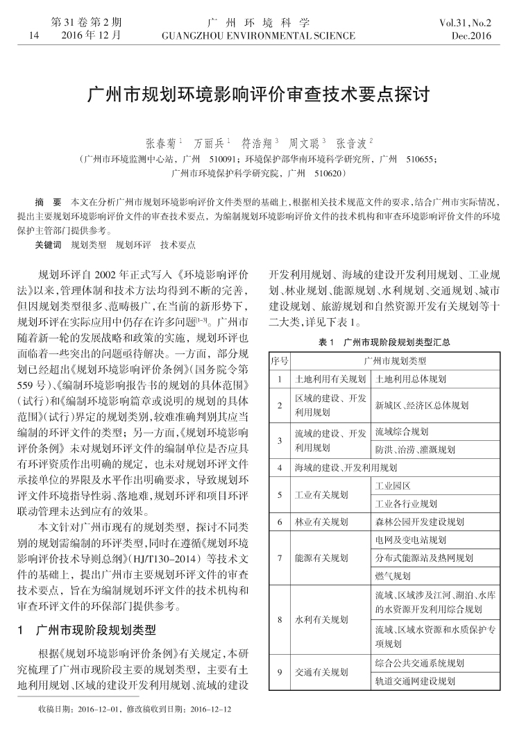 廣州市規劃環境影響評價審查技術要點探討……張春菊,萬麗兵,符浩翔,等(14)