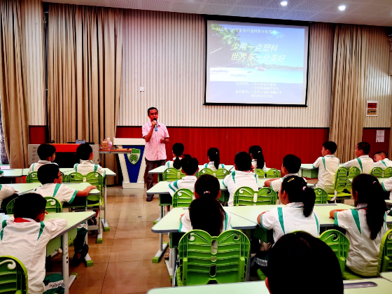現代人離不開塑料--塑料垃圾泛濫的危害—限塑令的頒布,韓老師由淺入深、圖文并茂地向同學們講述了塑料的便利性和危害性,建議大家盡量少用塑料制品,使用更環保的材料用品,為地球家園創造干凈舒適的生態環境。