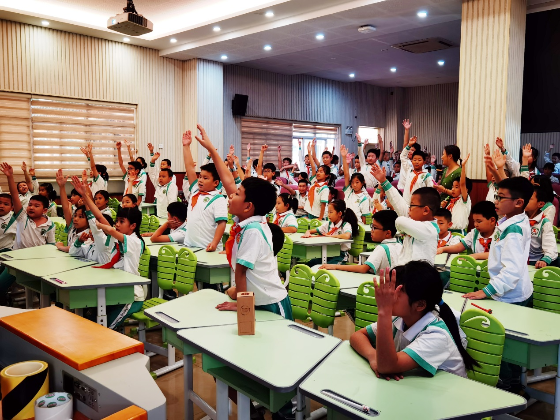 該講座由廣州市生態環境局和廣州市環境科學學會主辦,現場學生在韓老師的引導下,同學們對生活中常用的塑料制品可以用哪些材料代替等奇思妙想各抒己見,課堂充滿活躍熱烈氣氛。