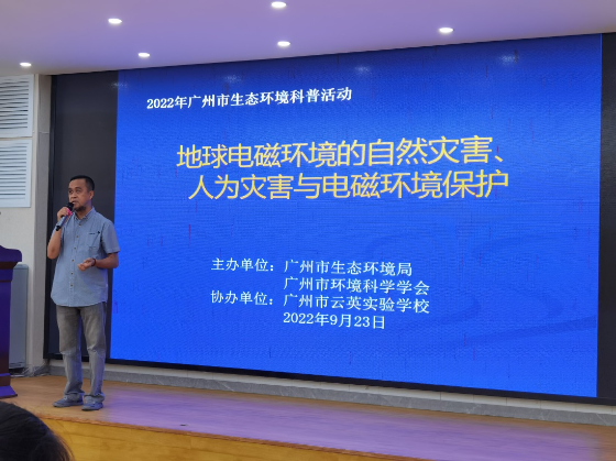 “宇宙中、地球上充滿各種電磁波?”“超新星爆炸會發出強烈輻射?”……一個個新穎而充滿神秘的標題吸引了學生的眼球,大家議論紛紛,各抒己見……這是廣州市云英實驗學校演播室的講座現場,9月23日上午,由廣州市生態環境局和廣州市環境科學學會共同主辦,在該校開展主題為“地球電磁環境的自然災害、人為災害與電磁環境保護”生態環境科普講座,該校五、六年級共110名學生參加了講座。
