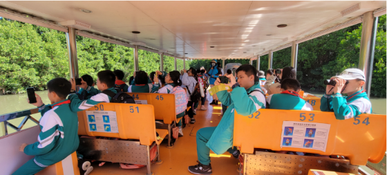 本次活動在廣州南沙濕地公園舉行,該公園也是我市的廣東省環境教育基地。50名中學師生組成的參觀團走進廣州南沙濕地公園,特邀顧問周順彬教授在濕地榕蔭道中向學生們講解濕地生態科普知識,游船講解員帶領學生們深入濕地生態保護核心區——紅樹林區、鳥巢區和鳥類覓食區。師生們沉浸在人與自然和諧共生的環境氛圍中,紛紛表示通過這次活動,對生態環境保護的重要性有了更深入的理解,今后將更加自覺主動地參與和配合生態文明建設工作。