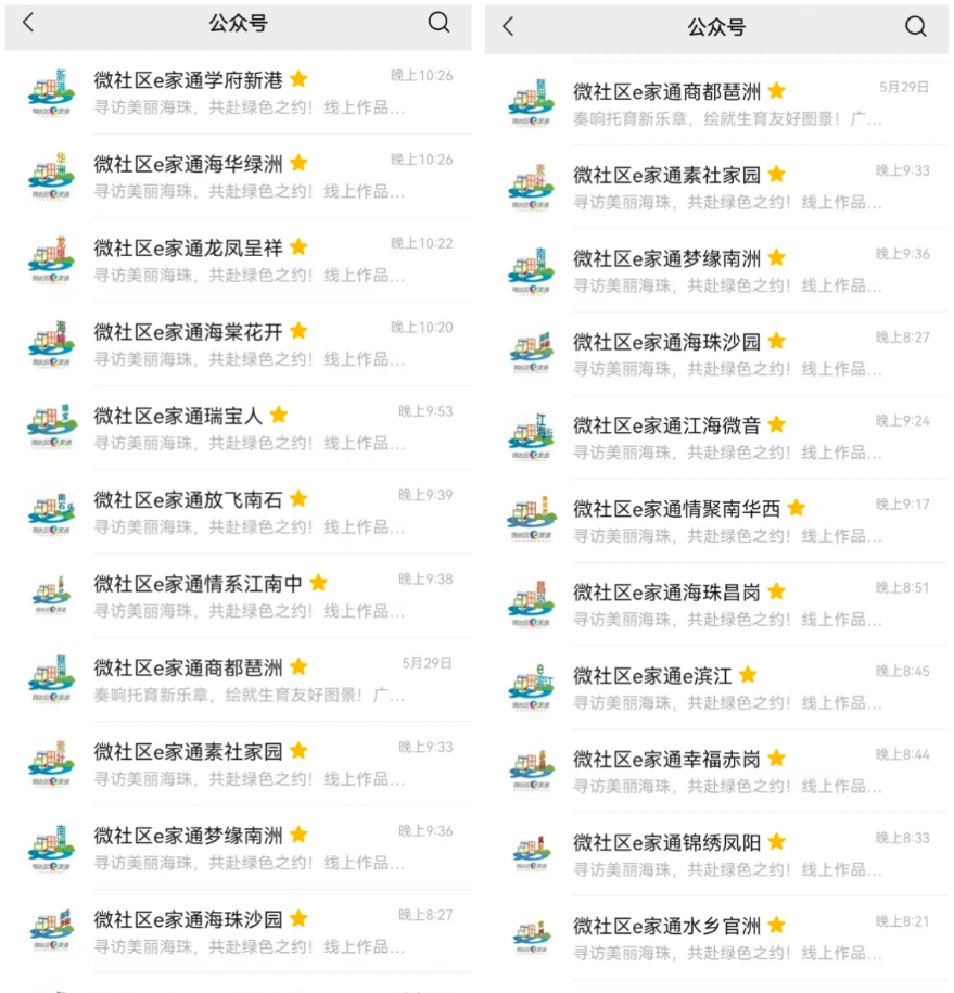 六五環境日前一周,海珠區在新花城平臺搭建起小程序,線上展出500余份由文藝工作者、環保相關從業人員、學生等各界人士創作的“尋訪美麗海珠”主題攝影攝像及書畫作品,以藝術的形式展示海珠生態文明建設工作與成效。六五環境日前3天,通過18條街道微社區e家通公眾號推海珠區六五環境日主題活動將在新花城平臺直播的信息。六五環境日當天,直播活動吸引了近90萬人次點擊觀看。與此同時,《珠水潤澤,河湖秀美》《綠蔭融城,詩意棲居》《無廢行動,全民參與》《綠水青山處,經濟繁華地》四部生態文明建設主題宣傳片在全區18個街道、政務服務中心等電子屏同步首映,用“15分鐘生態宣傳圈”實現線下宣傳全覆蓋,讓居民在日常生活場景中感受生態海珠的魅力。