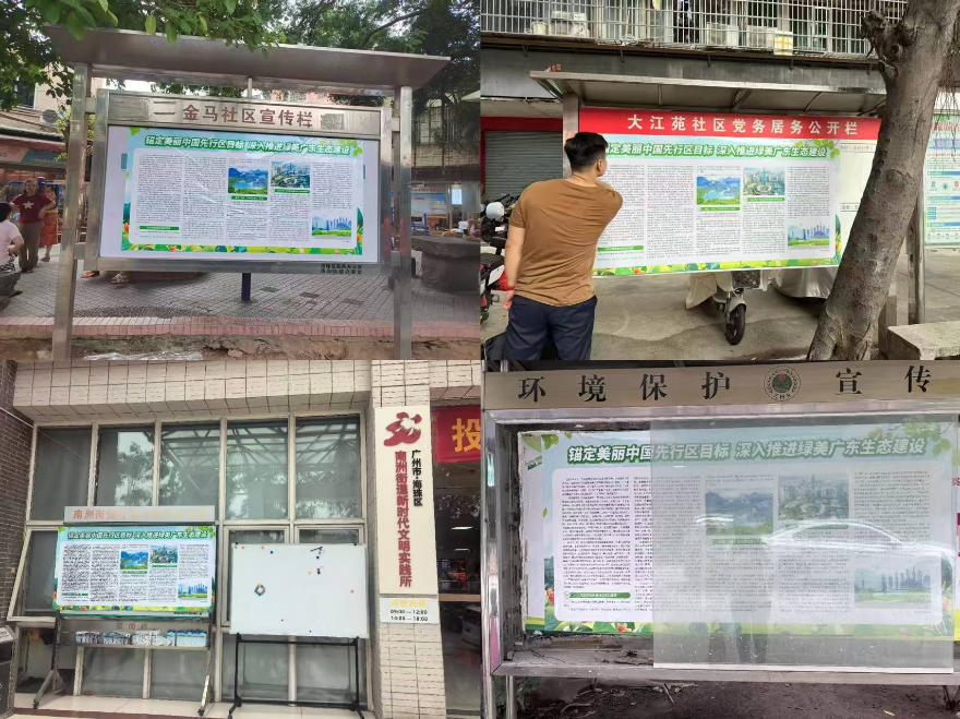 把街道生態環境中隊建設成為宣傳生態環保理念、團結動員群眾參與生態文明建設的先鋒,結合日常巡查監管工作,開展生態環境宣傳進社區、進校園、進企業活動,宣講生態環境保護政策法規,引導群眾自覺踐行綠色生產生活理念。6月以來,海珠區還組織各街道于社區服務中心、學校、交通要道、市場等顯要位置宣傳欄張貼“錨定美麗中國先行區目標 深入推進綠美廣州生態建設”宣傳墻報,營造了生態環境保護的濃厚氛圍。