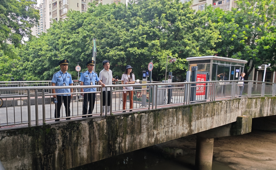 行動采取“非屬地生態環境局+屬地街道”聯合編組模式,組成三個巡查小組,分赴沙河涌上、中、下游河段開展全面排查。巡查聚焦污水直排、排污口異常、雨水口晴天溢流等城市河涌常見問題,同步記錄河岸違法建設、垃圾堆放及生態破壞線索,實現問題發現全覆蓋。通過交叉巡查,有效避免屬地管理盲區,增強問題識別的客觀性與準確性。
