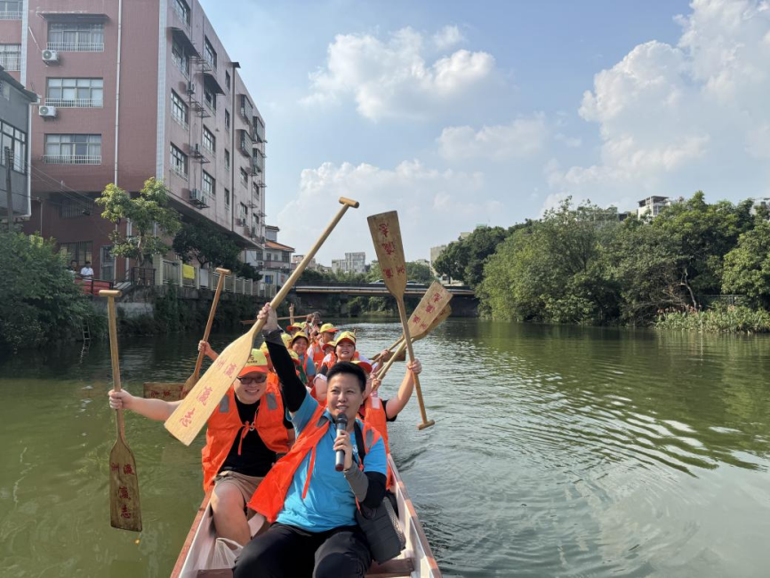 2025年10月,“小洲walk龍舟體驗營”在小洲村開展,市民在西江涌的良好水質(zhì)中體驗多元親水活動、觸摸非遺水鄉(xiāng)文脈。(圖片來源:微社區(qū)e家通海華綠洲)