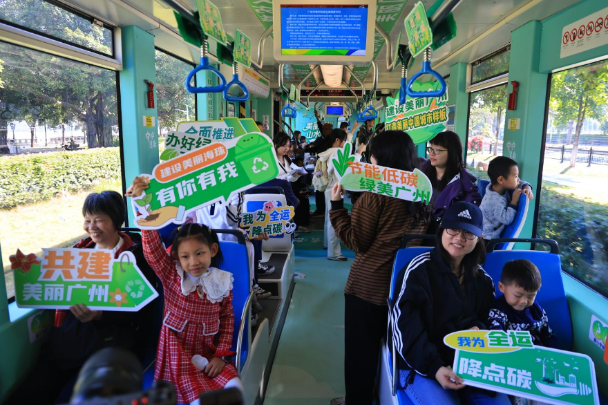 2025年11月23日上午,由廣州市環(huán)境保護宣傳教育中心,廣州市生態(tài)環(huán)境局海珠分局、天河分局聯(lián)合主辦的“循軌賞新生態(tài)同行”生態(tài)環(huán)境志愿服務活動,在微風輕拂的珠江畔緩緩拉開序幕。來自海珠區(qū)寶玉直實驗小學的約80名學生和家長和生態(tài)環(huán)保志愿者齊聚海珠有軌電車1號線,共同搭乘“美麗廣州山水花城”生態(tài)文明實踐主題有軌電車,并走進廣州新時代生態(tài)文明建設主題館,在“流動課堂”與“實景展廊”之間,完成了一堂別開生面的生態(tài)文明實踐課。