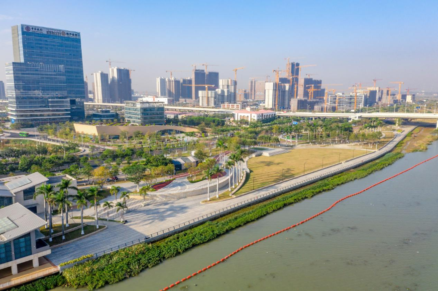 蕉門河依托原生植物體系與碧道系統,利用植物、濕地、園路、構筑物等打造了公園景觀系統,為周邊社區提供休閑綠道、游樂園和雨水花園,成功打造都市型高標準休閑觀光風情帶,完成了從城市傷疤到城市客廳的完美蛻變。