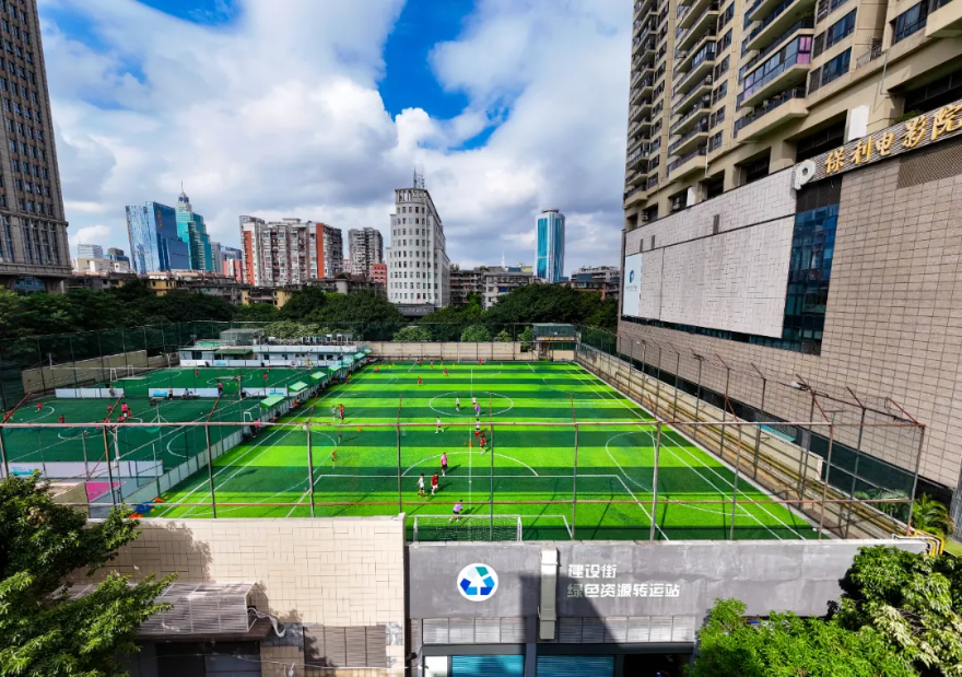通過挖潛城市“金角銀邊”,一個個便民惠民的“燈光球場”,讓全民健身在越秀“舉步可就”。廣州大橋二沙島段橋底場地分設了籃球場、網球場、匹克球場、健身區和便民服務區等,并規范了人車分流的安全流線,打造了“上層通行、橋底運動”的立體集約空間范本?;浭⒅协h的空中足球場建在社區垃圾站頂樓,通過密閉化設備更新、地面加固、景觀包裝和安全防護等多重措施,讓地面層的垃圾轉運站成功“隱身”,徹底消除了異味擾民問題。環市東核心區一個110千伏中旅變電站的頂層,也改造成一個標準的11人制足球場,實現了公共服務提質升級與空間資源集約利用的雙贏。
