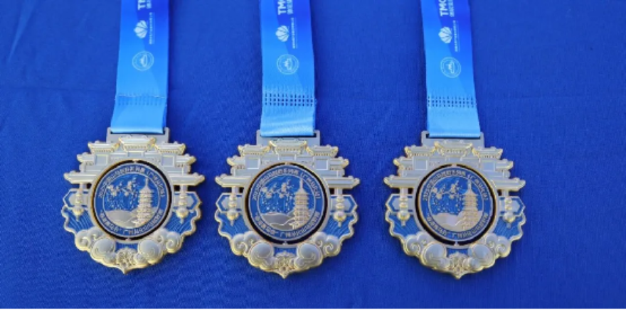 獎(jiǎng)牌以“旋轉(zhuǎn)互動(dòng)賦能文化賽事”為設(shè)計(jì)核心,主體采用可旋轉(zhuǎn)結(jié)構(gòu),正面整合從化地標(biāo)文峰塔、梅花與廣府古建筑群,具象化“山水從化”的生態(tài)基因與嶺南美學(xué);云紋承載傳統(tǒng)吉祥寓意,金色彰顯榮譽(yù)分量,藍(lán)色呼應(yīng)從化山水自然底色;背面“向山而跑 非凡之路”的賽事主題清晰呈現(xiàn),指尖轉(zhuǎn)動(dòng)間,生態(tài)之美與越野精神交融共鳴。