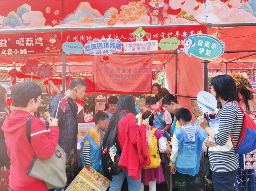荔灣花市現場由市生態環境荔灣分局、區水務局聯合市自來水公司、市環境科學學會開展的生態環境公益宣傳志愿服務吸引了眾多市民參與