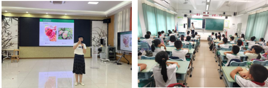 “植物是地球書寫生命的璀璨密碼,每一片葉子、每一粒果實(shí)都承載著自然的智慧與饋贈。”由譚如冰和劉煥芳老師主講的《植物源食物的多樣盛宴》,分別走進(jìn)天河區(qū)華陽小學(xué)、僑樂小學(xué)、新塘小學(xué)、珠村小學(xué)和智慧城第一小學(xué)等5所學(xué)校。通過“森林尋寶記”環(huán)節(jié),讓萌寶杜鵑紅山茶帶領(lǐng)同學(xué)們穿越時(shí)空,從耕地?cái)U(kuò)展到森林,講述食物來源,用生動的案例引導(dǎo)同學(xué)們思考如何實(shí)現(xiàn)食物資源的多元開發(fā)。