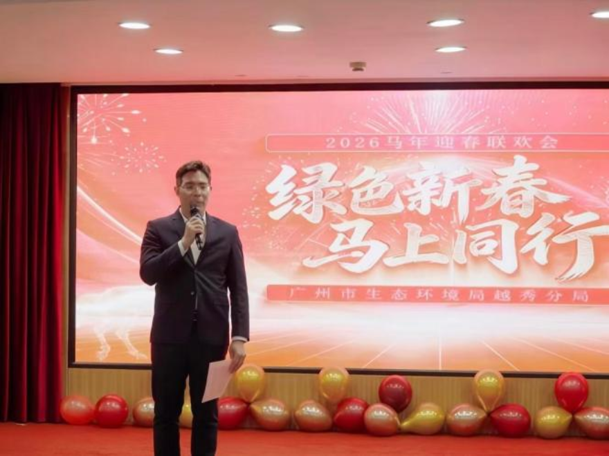 春風送暖,綠意盎然,在2026年農歷馬年即將到來之際,廣州市生態環境局越秀分局于2月6日舉辦了一場別開生面的“綠色新春·馬上同行”新春聯歡會。活動特別邀請了市生態環境局系統工會及代表處室領導,與分局干部職工歡聚一堂,共同欣賞這場由越秀分局干部職工自編自導自演的新春文藝匯演。