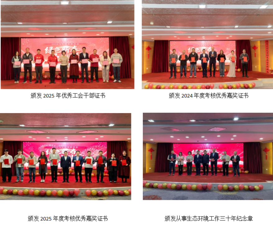 在莊重而溫暖的頒獎環節,2025年優秀工會干部、年度考核優秀獲嘉獎個人、從事生態環境工作三十年工作者依次登臺,他們中既有默默服務的工會“貼心人”,也有勇擔重任、表現優秀的業務骨干,更有將三十年青春融入越秀綠水青山的資深環保人。當從事生態環境工作三十年的前輩們登臺時,現場響起了持久而熱烈的掌聲。這掌聲致敬的,不僅是時間,更是三十載如一日的忠誠、熱愛與擔當。正是這一代又一代環保工作者的接力奔跑,才匯聚成推動生態環境持續向好的磅礴力量。