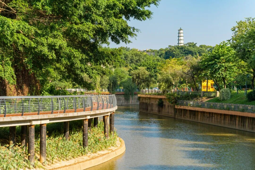 百花涌位于增城區城央,曾因生活污水直排和河道淤塞導致河涌黑臭。增城區通過全面踐行河長制,大力實施截污納管、全面清淤、建設生態護坡等工程措施,提升了水環境質量與河道整潔度;同時,踐行“碧道+”理念,開展“十里百花”碧道建設打造城區綠帶和人文活力帶,提升城市品位,傳承水鄉文化,繪就出“河暢、水清、岸綠、景美”的生態畫卷。