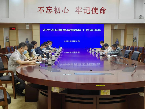 5月12日上午,廣州市生態環境局黨組書記、局長楊柳帶隊實地調研番禺生態環境治理和水環境治理三年攻堅行動開展情況并座談交流。番禺區委書記黃彪陪同調研,區委副書記、區長葉珊瑚主持座談交流會。