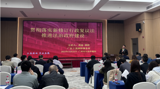 本次培訓(xùn)邀請(qǐng)廣東國(guó)智律師事務(wù)所周磊律師,對(duì)新《行政復(fù)議法》進(jìn)行現(xiàn)場(chǎng)授課,越秀、天河、黃埔、番禺分局分別圍繞法制審核、生態(tài)環(huán)境損害賠償、應(yīng)議應(yīng)訴、法治人才培養(yǎng)等主題分享經(jīng)驗(yàn)和做法。